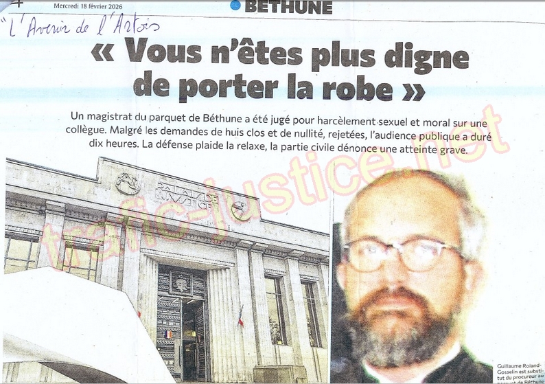 Après une carrière d'avocat, Guillaume Roland-Gosselin, 44 ans, intègre la magistrature à Boulogne-sur-Mer en 2018. Il arrive au parquet de Béthune en 2021. « u n a ncien collègue boulonnais alerte sur votre attitude envers les jeunes collègues femmes » , raconte la présidente. Il a en outre écopé d'un avertissement pénal probatoire du procureur de Lille dans une affaire de proxénétisme.