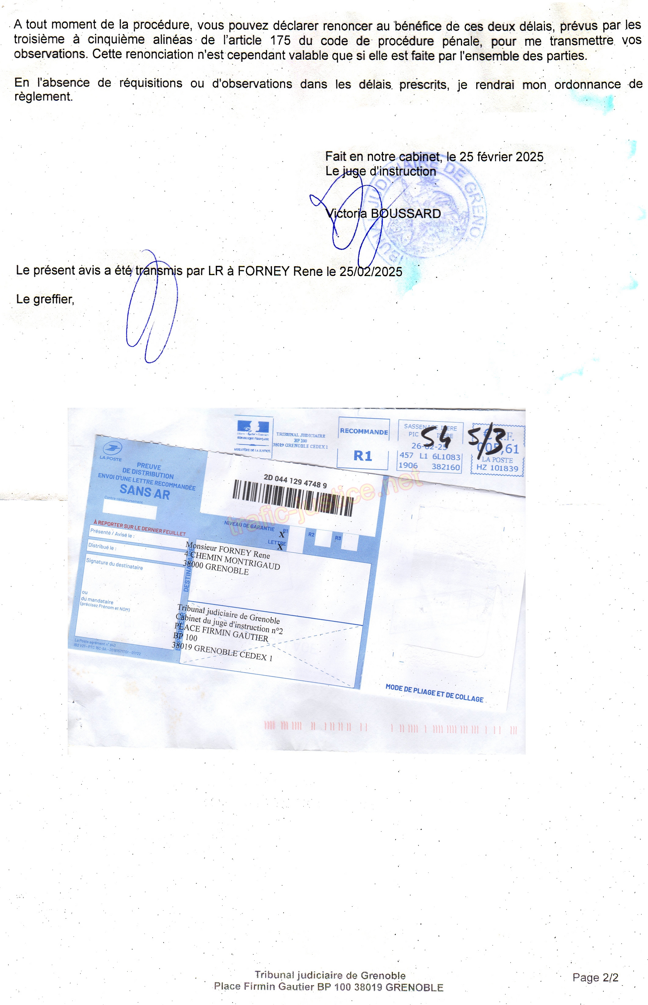 Le bien immobilier (avec le terrain) a été pillé par la corruption du notaire Bruno ESCALLIER. La procédure pénale est en cours comme vous pouvez le constater sur le document joint du juge d'instruction Victoria BOUSSARD (Tribunal judiciaire, Palais de Justice de Grenoble, Pl. Firmin Gautier, 38000 Grenoble)