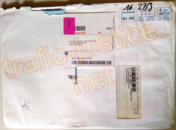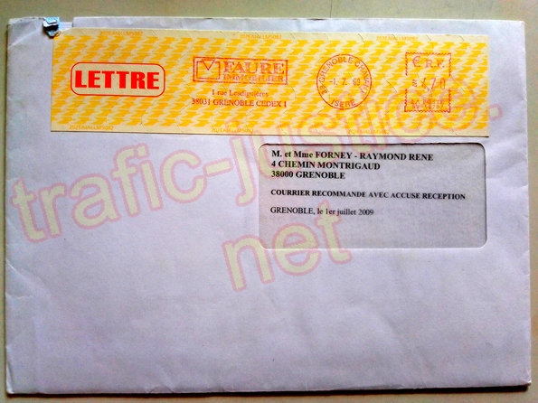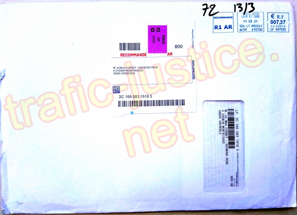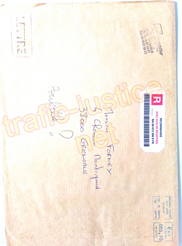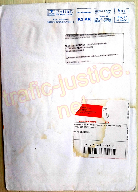 III - On peut s'étonner que le tribunal de Grenoble (qui utilise depuis 1999 l'adresse de M FORNEY du 4 chemin Montrigaud à Grenoble) n'ait pas fait remarquer à l'avocat du syndic Pierre-Marie DEJEAN ni à ce commissaire de justice (huissier) leurs erreurs d'adresse grossières alors que des dizaines de recours sont publiés sur internet notamment depuis 2003 lors des vols des fichiers par la police sur des accès confidentiels et des vols des courriers de M FORNEY par ces mêmes policiers en 2000 !