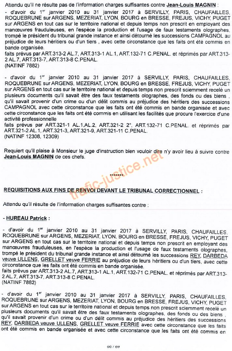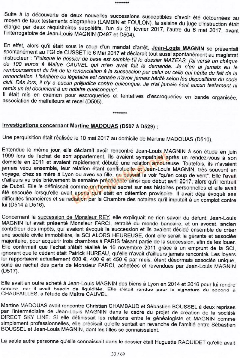 Suite à la découverte de deux nouvelles successions susceptibles d'avoir été détournées au moyen de faux testaments olographes (LAMBIN et FOULON), la saisine du juge d'instruction était élargie par deux réquisitoires supplétifs, l'un du 21 février 2017. l'autre du 6 mai 2017, avant l'interrogatoire de Jean-Louis MAGNIN (D497 et D504).