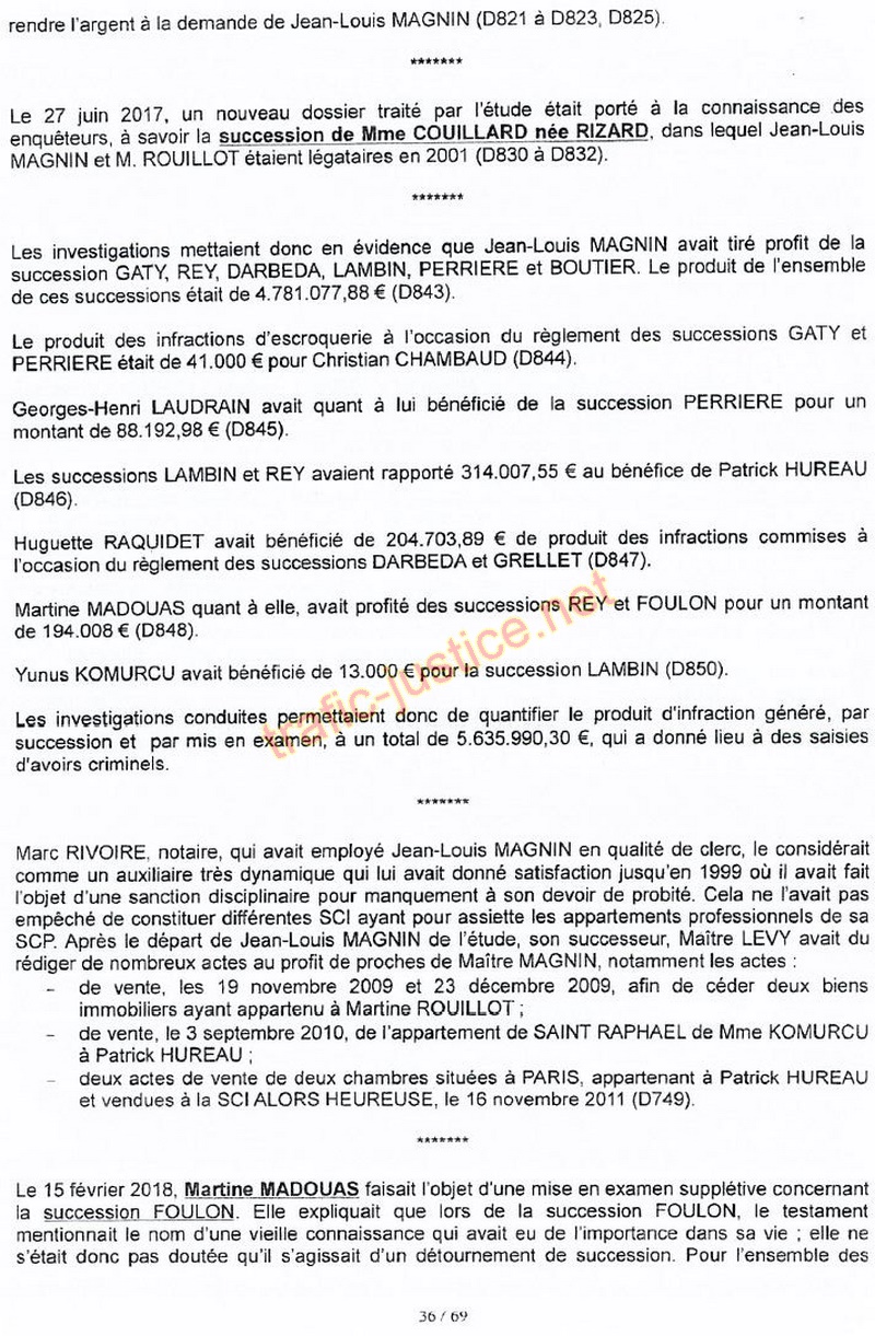 Les investigations mettaient donc en évidence que Jean-Louis MAGNIN avait tiré profit de la succession GATY, REY, DARBEDA, LAMBIN, PERRIERE et ROUTIER. Le produit de l'ensemble de ces successions était de 4.781.077,88 E (D843).