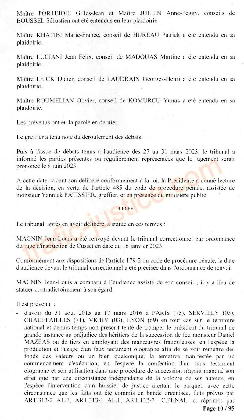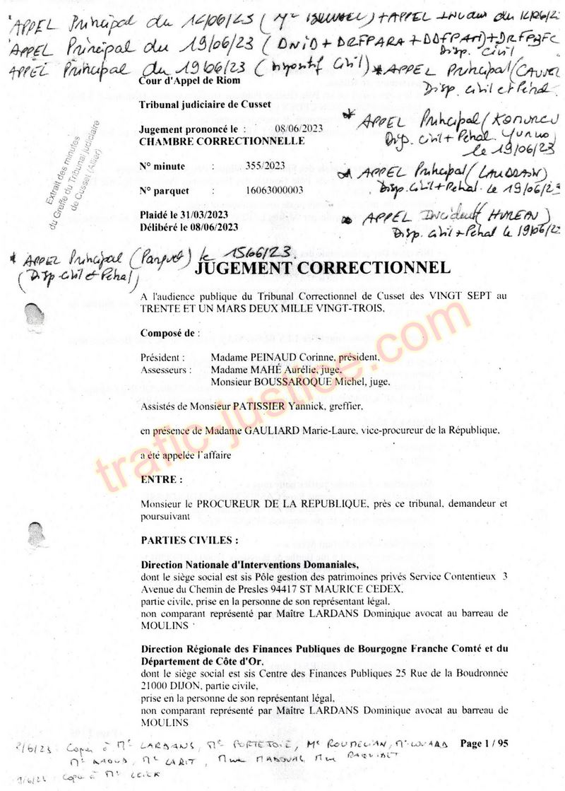 A l'audience publique du "tribunal Correctionnel de Cusset des VINGT SEPT au TRENTE ET UN MARS DEUX MILLE VINGT-TROIS Composé de