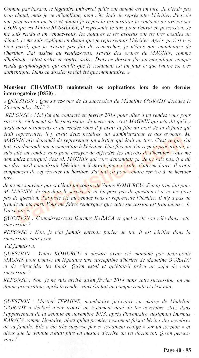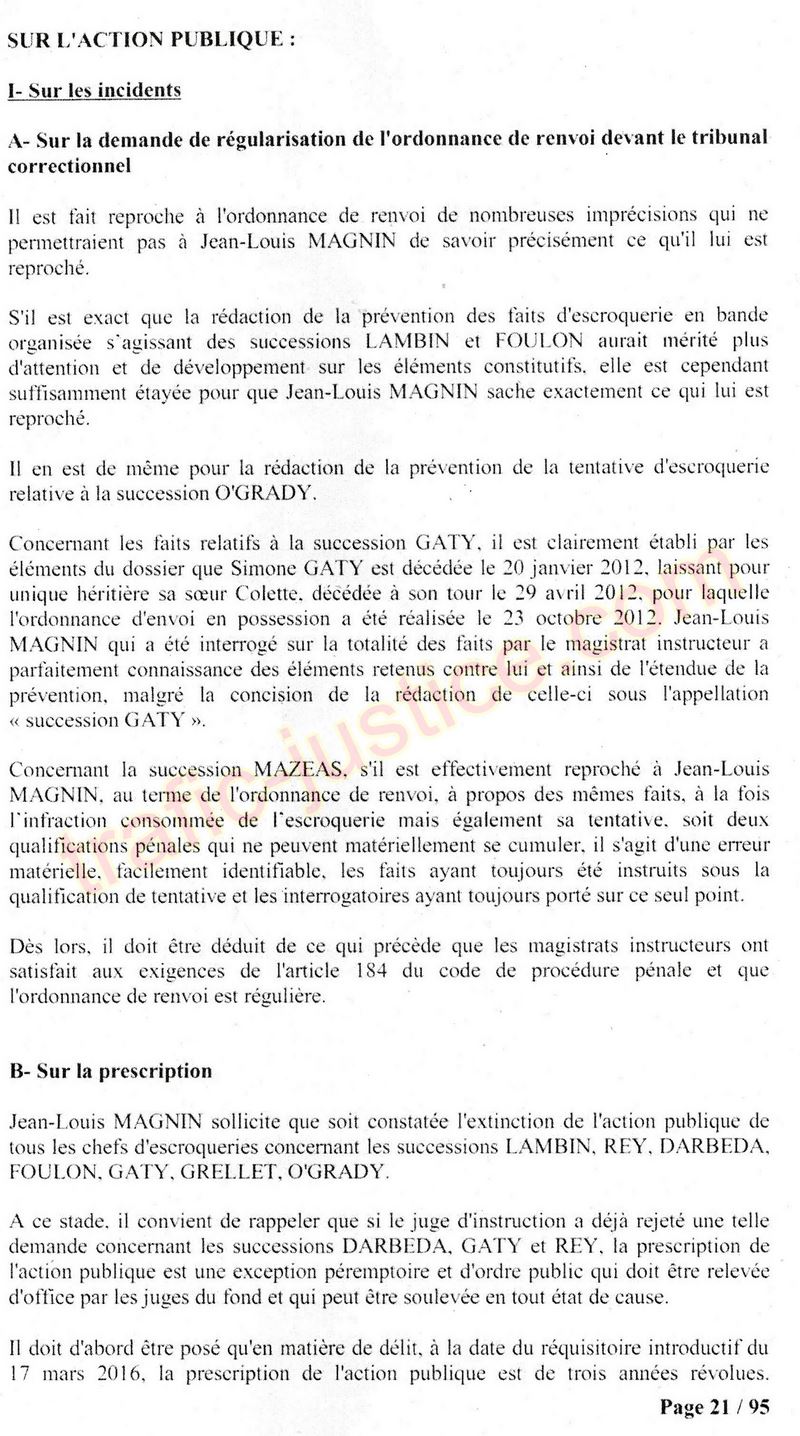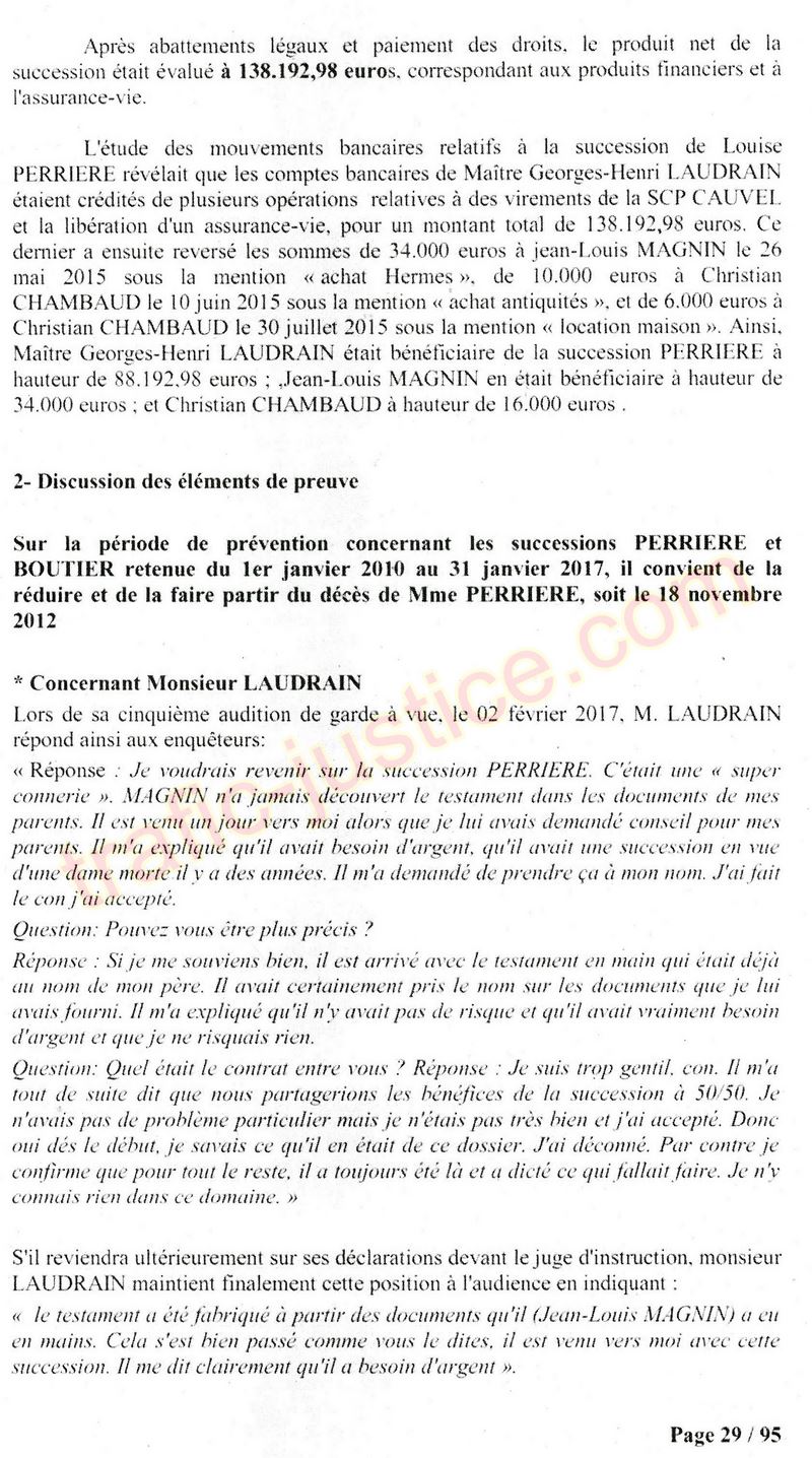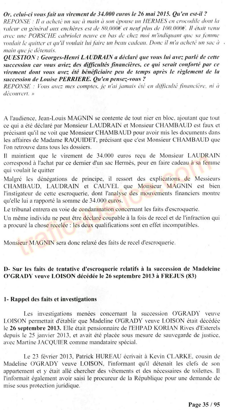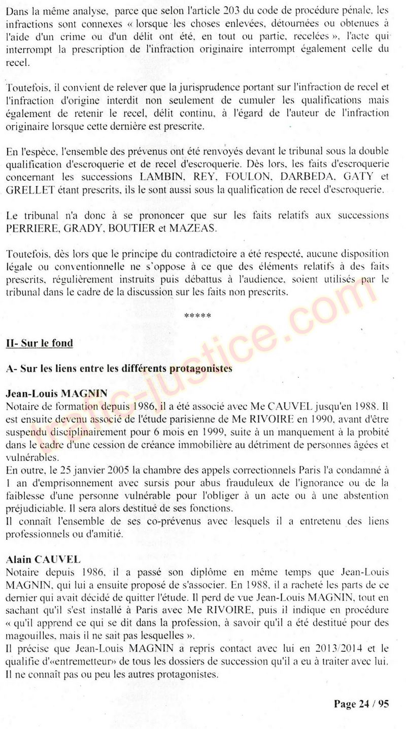 A Cusset (banlieue de Vichy) au lieu de les juger pour crimes de faux pour les détournements avec faux testaments, ils passent en correctionelle avec une quasi impunité. Des prescriptions des spoliés en découlent ! Alors que le notaire MAGNIN est un récidiviste avec un complice actif. (8 ans pour juger cette affaire ! Pourquoi pas après leur mort ?