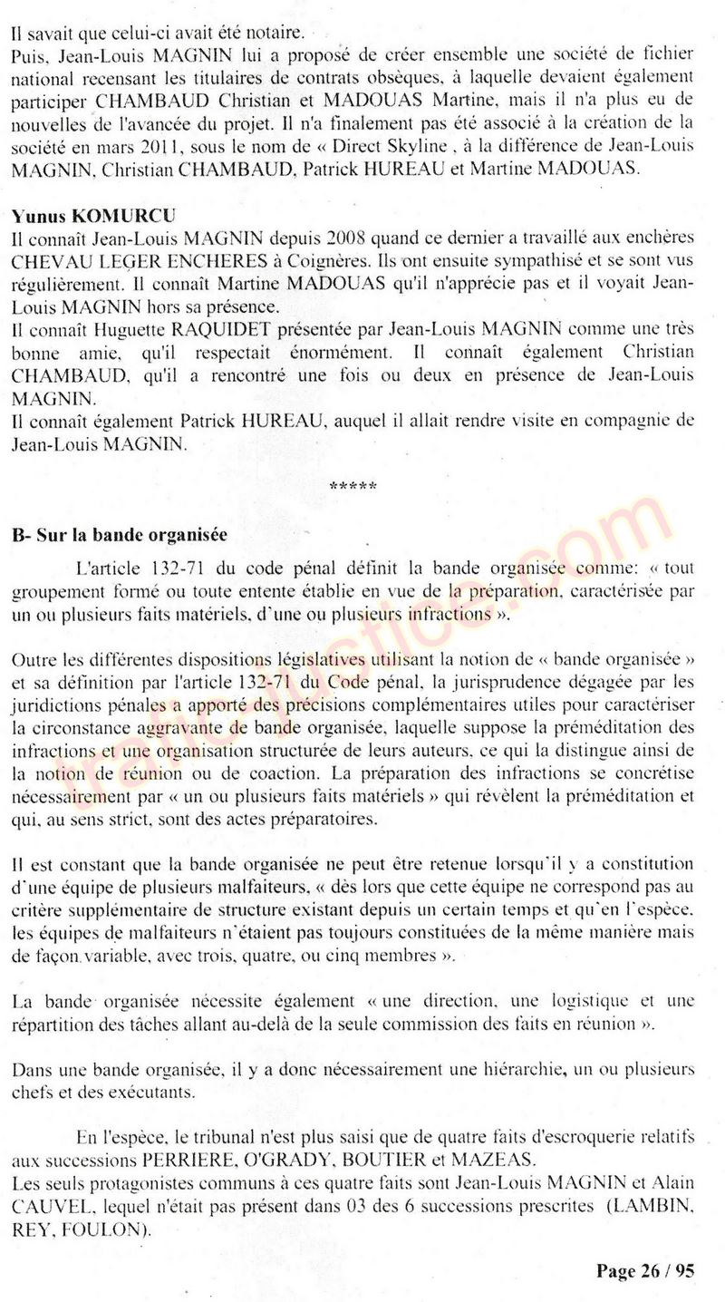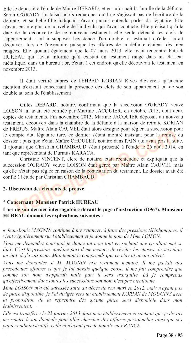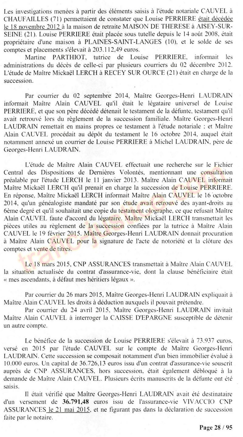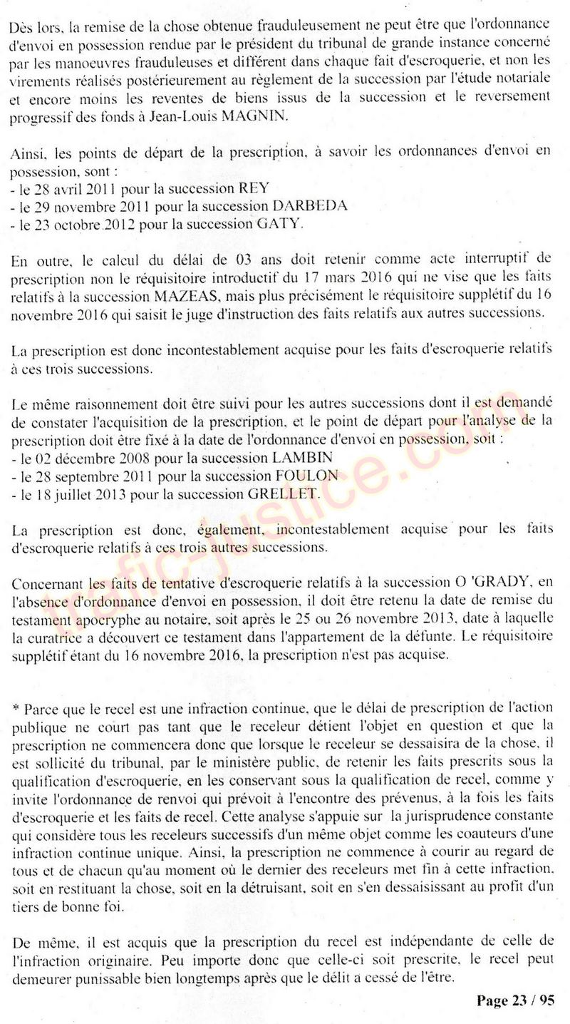 A Cusset (banlieue de Vichy) au lieu de les juger pour crimes de faux pour les détournements avec faux testaments, ils passent en correctionelle avec une quasi impunité. Des prescriptions des spoliés en découlent ! Alors que le notaire MAGNIN est un récidiviste avec un complice actif. (8 ans pour juger cette affaire ! Pourquoi pas après leur mort ?