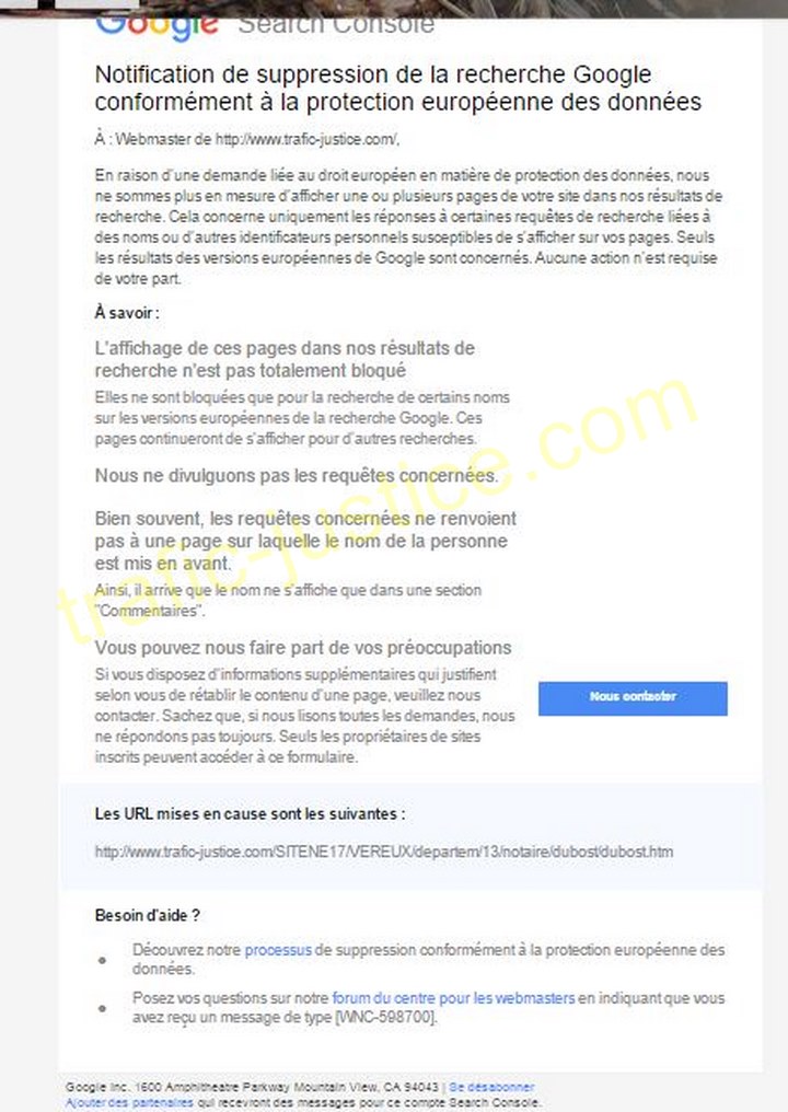 | Sur cette page sont présents les noms : Deschamps Yves Nicolas ... suspendu... M' Serge Dubost, le notaire ... écroué aux Baumettes ... accusé d'avoir détourné bijoux et bons au porteur pour plus de 153 000 € ....un notaire condamné à deux ans de prison pour escroquerie ... Marseille , bouches-du-rhône Me Serge Dubost, 43 ans, notaire ... Bing devient (à cause de cela) plus efficace que Google Demande à Google Bonjour, Le notaire SERGE DUBOST demande le droit à l'oubli et pour cela demande d'effacer le lien : https://www.trafic-justice.com/SITENE17/VEREUX/departem/13/notaire/dubost/dubost.htm Vous pouvez constatez à la lecture de la page en cause, que, le truand mis en cause est un notable qui a abusé de sa fonction pour opérer à des détournements de biens. Des centaines de mes pages recensent ce type de personnage crapuleux de nos institutions. Beaucoup de victimes en France se battent contre ces personnes très difficiles à atteindre de par leurs relations dans les institutions. Nous espérons un jour obtenir comme aux US de pouvoir faire des actions de groupe actuellement possibles uniquement pour le produit de la grande consommation. Pour cela, nous devons constituer nos groupes, et, les moteurs de recherche permettent de nous rassembler. Si vous effacez les liens, les victimes resteront isolées les unes des autres, sans savoir quelles sont les autres victimes, ici du notaire Serge DUBOST Bien sûr, il ne souhaite surtout pas que des victimes de ses crapuleries puissent se ressembler un jour contre lui lorsque nous aurons obtenu l'action de groupe dans la loi contre des personnes. Mon site internet est là pour lutter contre cette quasi impunité des notables crapuleux de notre pays. Je vous remercie de ne pas nous obliger à orienter les autres victimes vers des moteurs de recherche qui ne pratiquent pas cette censure, qui n'est pas au service du peuple mais de notables qui souhaitent faire disparaître du net leurs malversations. Cordialement René FORNEY 07 63 15 66 46 Comme expliqué plus haut notre association memejusticepourtous.org milite et aide tous ceux qui publient pour des actions de groupe futures contre des personnes crapuleuses hors d'atteinte actuellement. Supprimer ces liens, c'est mettre en échec une justice future. |
