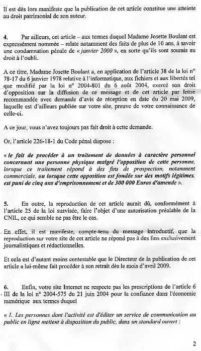 La résistance est en marche. Mme BOULANT Josette, il vous reste à trouver un magistrat pour me faire condamner pour ma publication d'un article de presse qui, à ma connaissance, n'a pas été démenti puisque vous refusez de me communiquer le jugement vous condamnant.