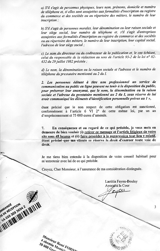 Le 2 mars 2010, après sa demi-heure de menaces téléphoniques votre avocat n'a visiblement pas compris que les français en ont marre de cette délinquance financière en col blanc qui bénéficie d'une quasi impunité ou avec un culot monstre certains comme vous se présentent aux élections (page 18) en utilisant l'argent volé à des victimes qui sont très souvent acculées au suicide où à la déprime à la suite d'abus de pouvoir. La plupart devrait être jugé devant les assises et non en correctionnelle car ce sont des assassins.