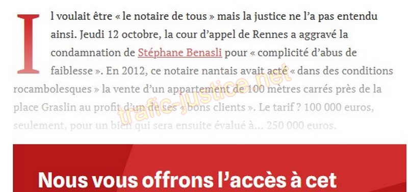Extraits : 2023... 12 oct. ... notaire continuera d'exercer... bradé l'appartement ... la cour d'appel de Rennes a aggravé la condamnation de Stéphane BENASLI pour " complicité d'abus de faiblesse "...