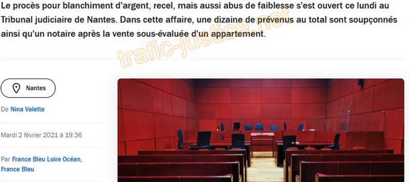 Un procès commence ce lundi à Nantes au Tribunal judiciaire. Sont concernés dans cette affaire, une dizaine de prévenus soupçonnés de blanchiment d'argent, de recel mais aussi d'abus de faiblesse. Des faits qui se sont déroulés entre 2008 et 2012.