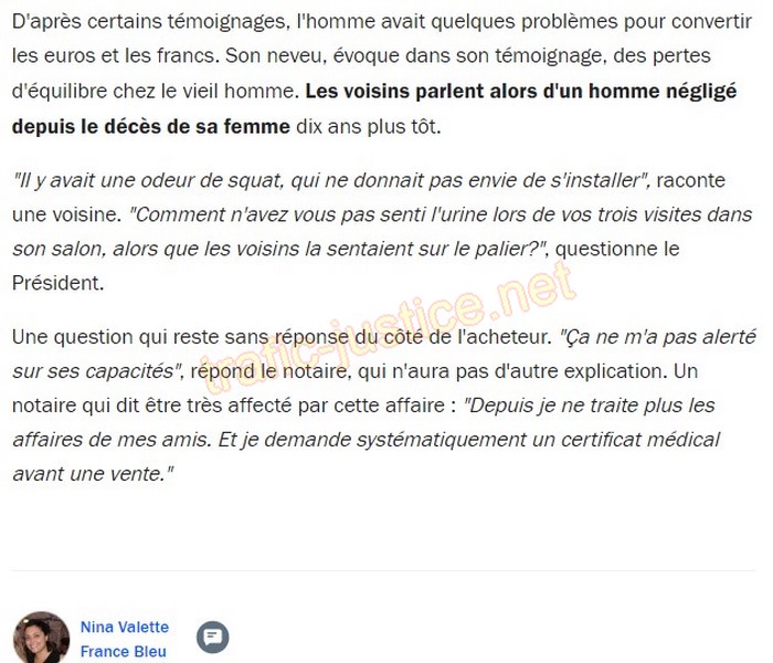 Une question qui reste sans réponse du côté de l'acheteur. "Ça ne m'a pas alerté sur ses capacités" , répond le notaire, qui n'aura pas d'autre explication. Un notaire qui dit être très affecté par cette affaire : "Depuis je ne traite plus les affaires de mes amis. Et je demande systématiquement un certificat médical avant une vente."