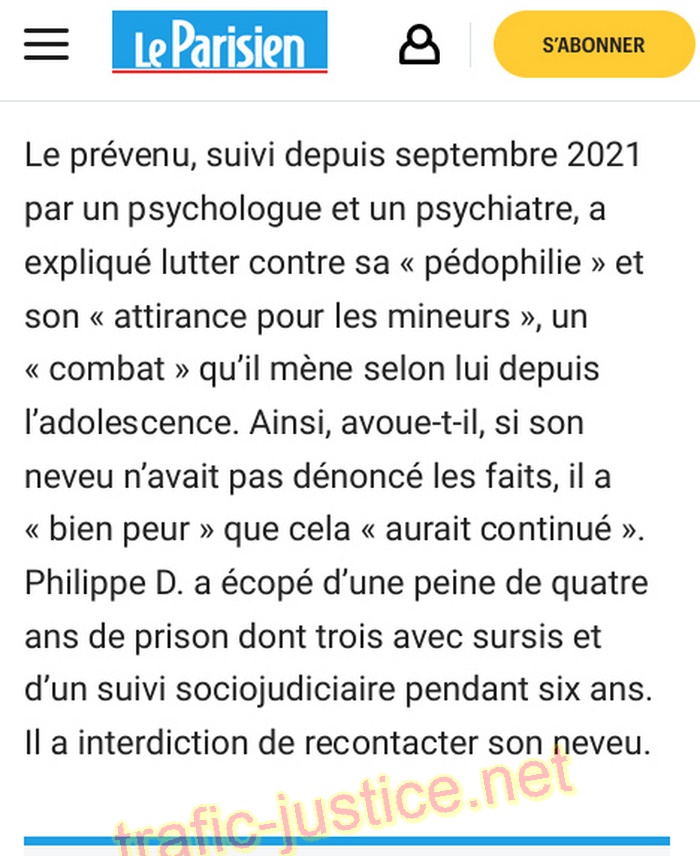 Reste que, pour celui qui est « suivi depuis septembre 2021 par un psychologue et un psychiatre », lutter contre sa « pédophilie » et son « attirance pour les mineurs » est un « combat » depuis l'adolescence.