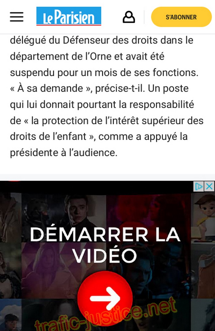 Ce retraité de « la Sécurité routière », aujourd'hui âgé de 68 ans, est en fait « bénévole » auprès du Défenseur des droits, « une autorité constitutionnelle (…) qui veille à la protection des droits ». A ce titre, cet habitant d'Alençon a notamment la charge de « la protection de l'intérêt supérieur des droits de l'enfant ». Il est toujours en fonction mais a reçu « une suspension d'un mois », à sa demande…
