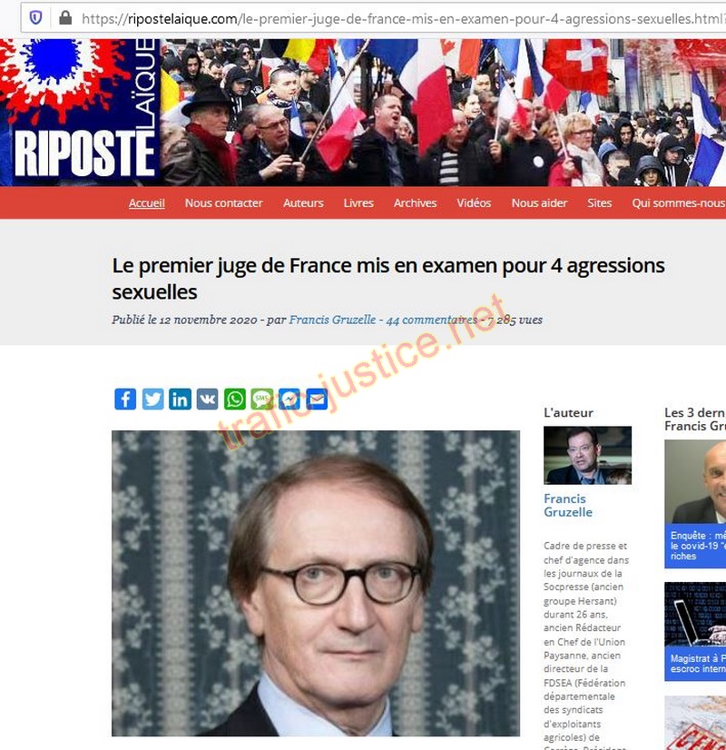 Le premier juge de France mis en examen pour 4 agressions sexuelles Publié le 12 novembre 2020 - par Francis Gruzelle - 44 commentaires - 7 285 vues