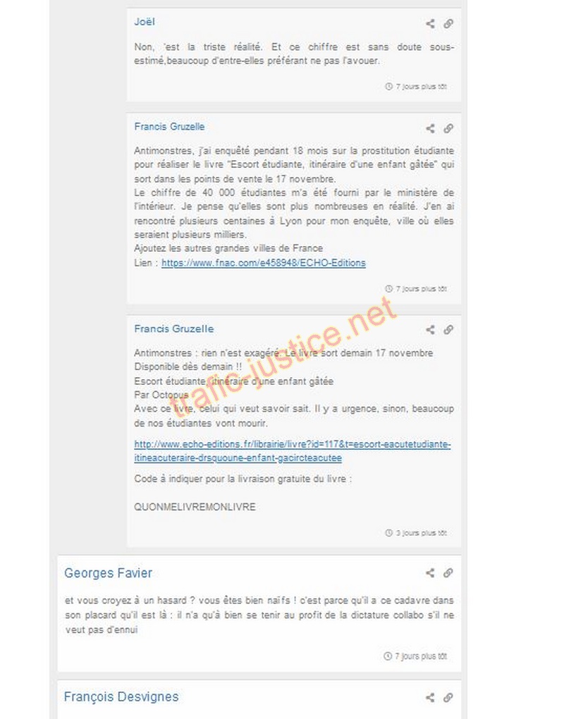 "Dans une France où 40 000 étudiantes en situation de précarité sont OBLIGEES de se prostituer pour survivre,": putain ! Vous exagérez, non ? Quand la France existait encore, elles préféraient faire la femme de ménage où faire la toilette des vieux impotents. Faut pas charrier, tout de même !