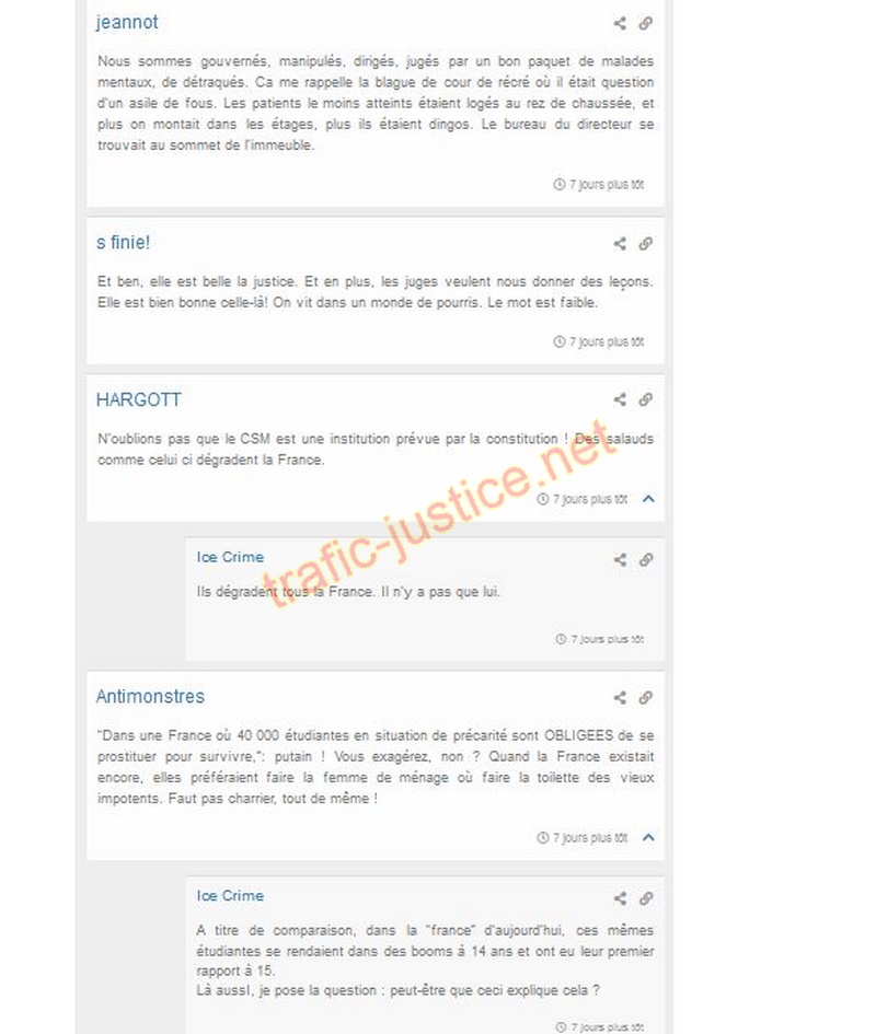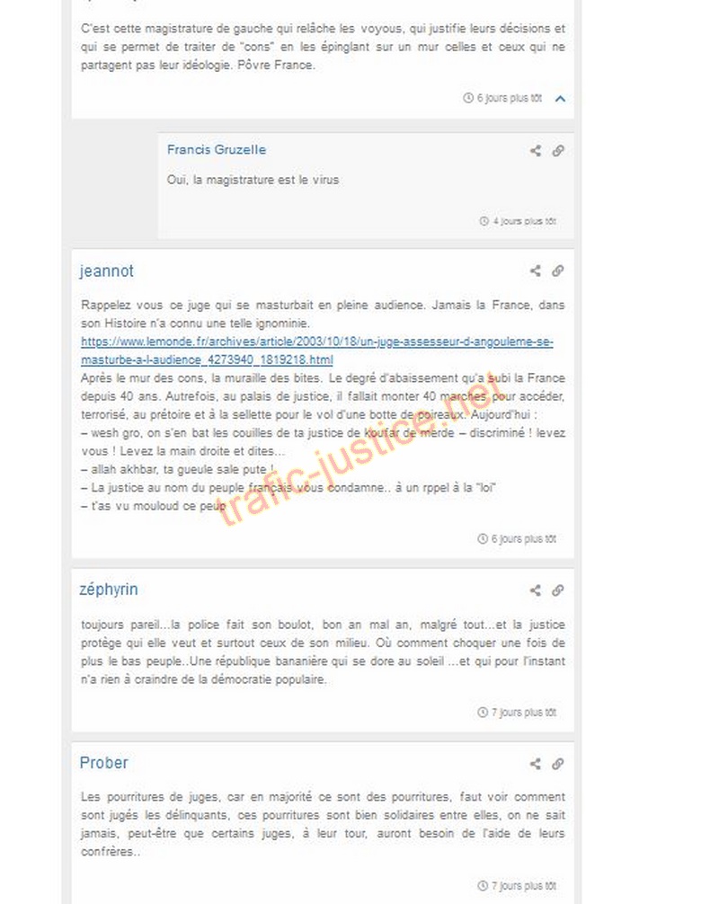 Rappelez vous ce juge qui se masturbait en pleine audience. Jamais la France, dans son Histoire n'a connu une telle ignominie.