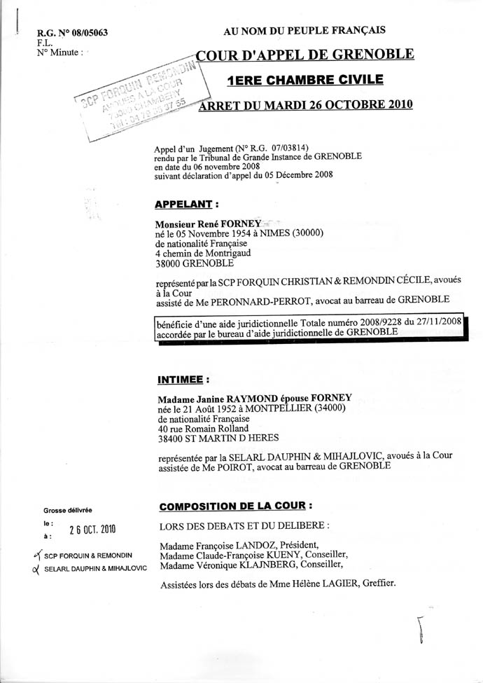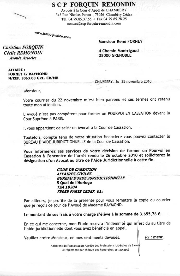 René FORNEY, 4 chemin Montrigaud, 38000 Grenoble, Tél. : 06 13 84 59 96 Grenoble le lundi 22 novembre 2010 Objet : Votre lettre du 8 novembre 2010 concernant