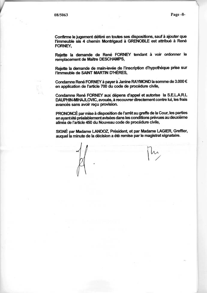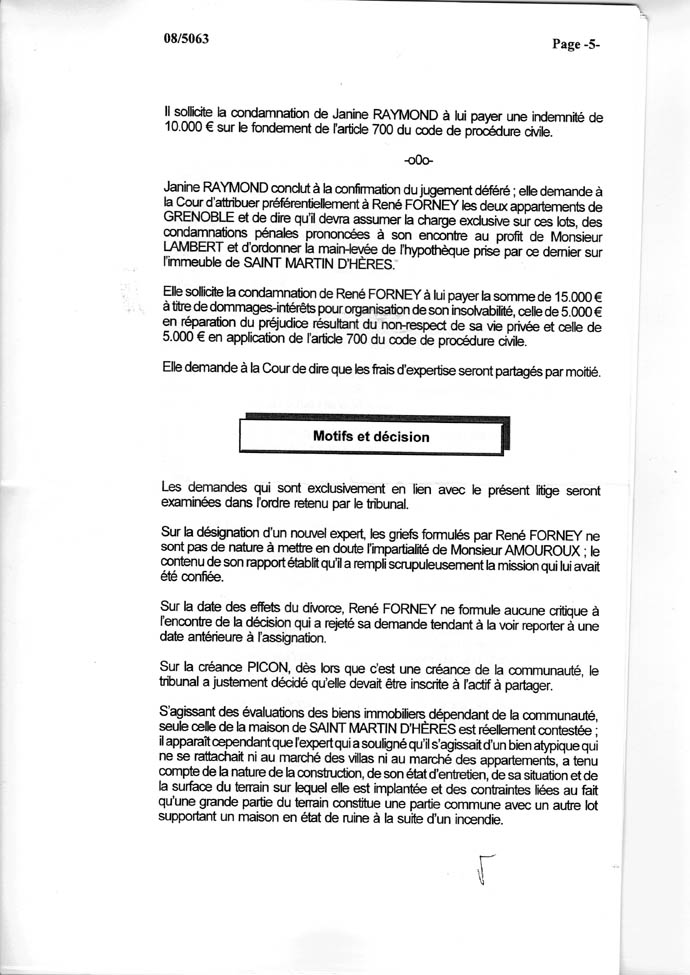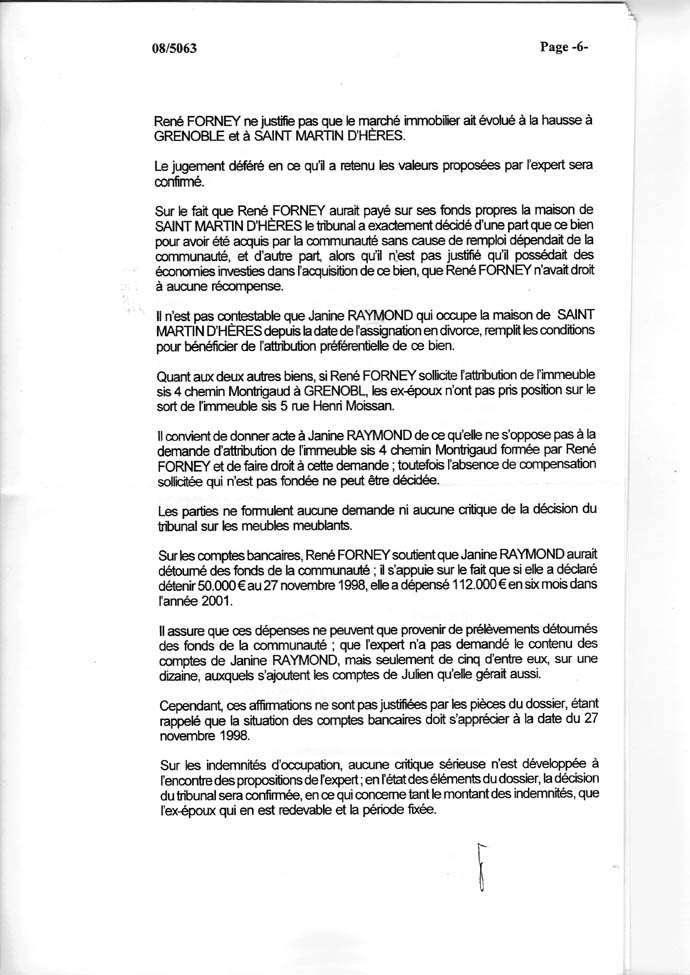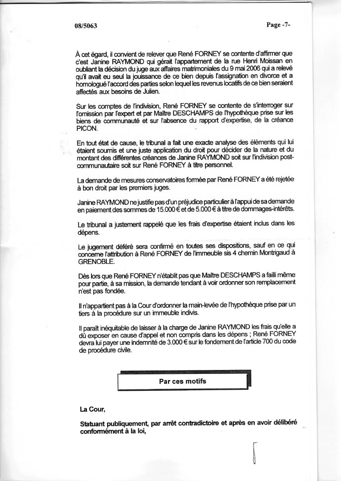 Les juges qui ont validé ma spoliation en appel : LANDOZ Françoise, KUENY Claude Françoise, KLAJNBERG Véronique parfaitement informés des auteurs et des méthodes de ma spoliation sont donc forcement complices de ces réseaux affairistes mafieux. De même, ce partage est confié à un notaire truand DESCHAMPS Yves totalement étranger aux trois biens immobiliers, alors que vous êtes mon notaire de la famille depuis 1980, cela, ne surprend pas ces juges ! Vous feriez bien de réfléchir à cette lettre au lieu de me transmettre des demandes absurdes de votre confrère notaire. Croyez-vous que votre passivité vous met hors de cause ?