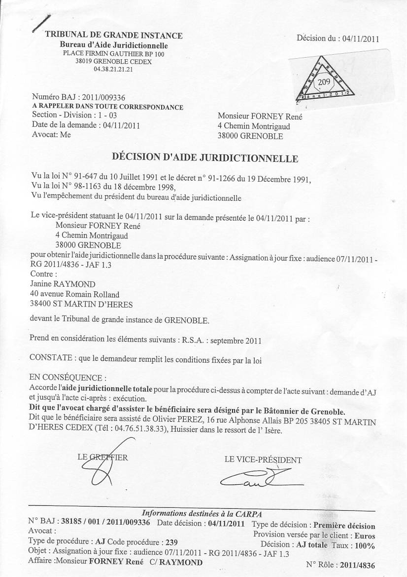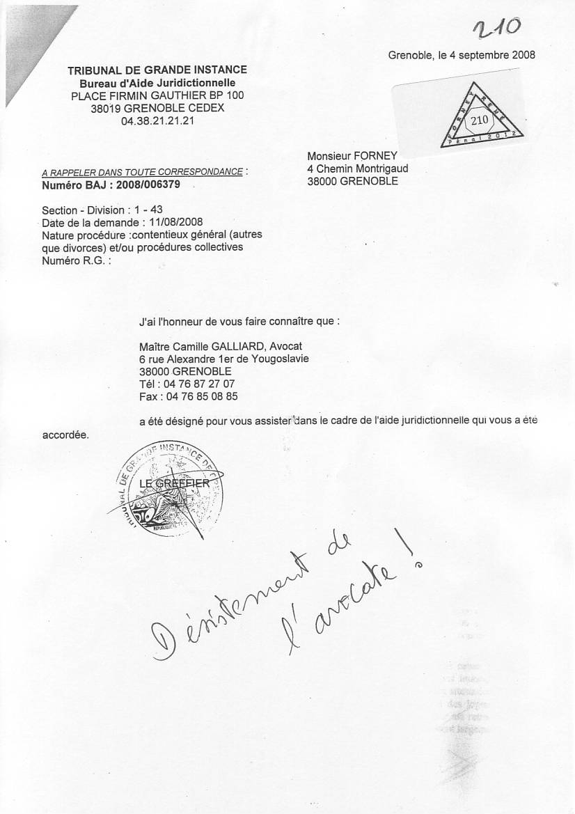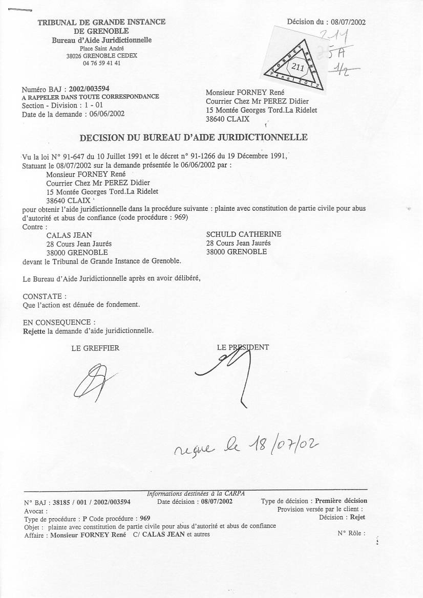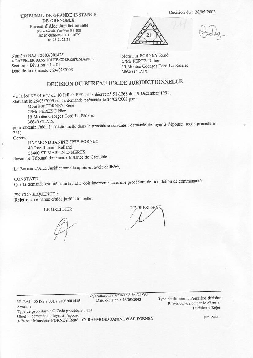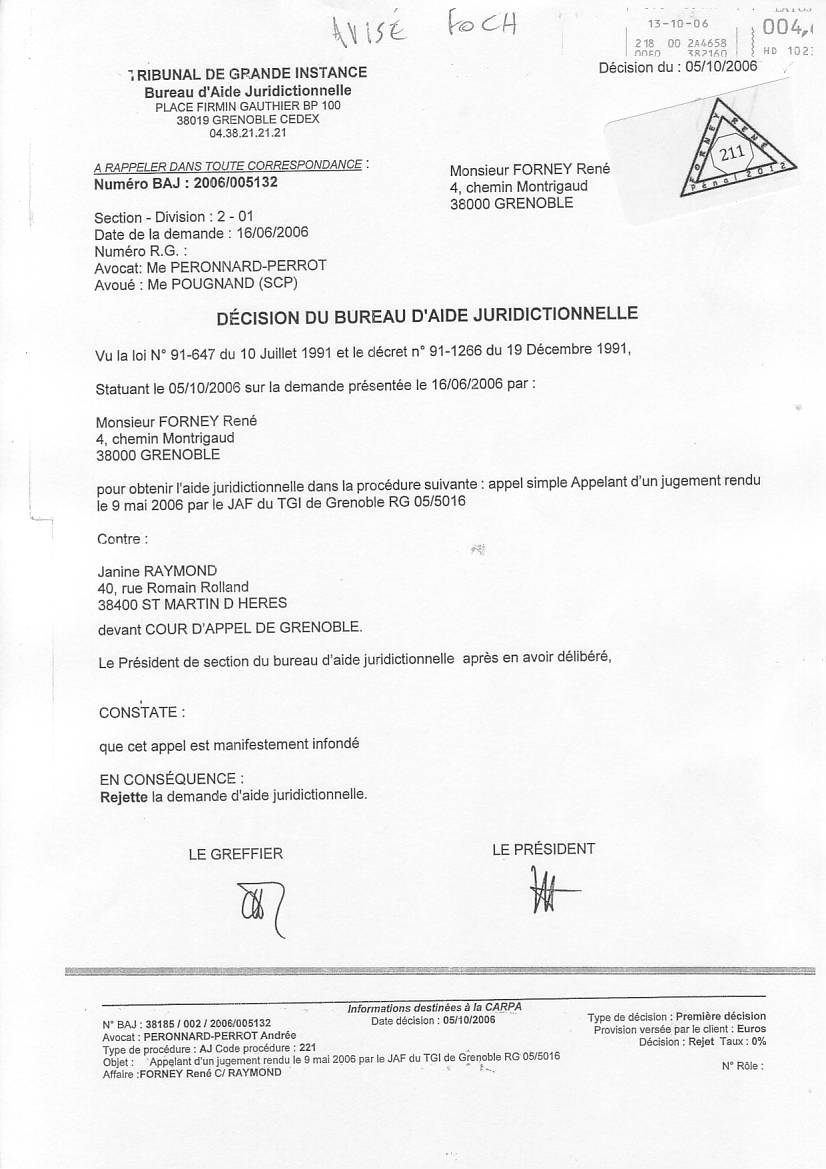 VOIR les décisons d'AJ refusées pour entraver le cours de la justice clic ICI