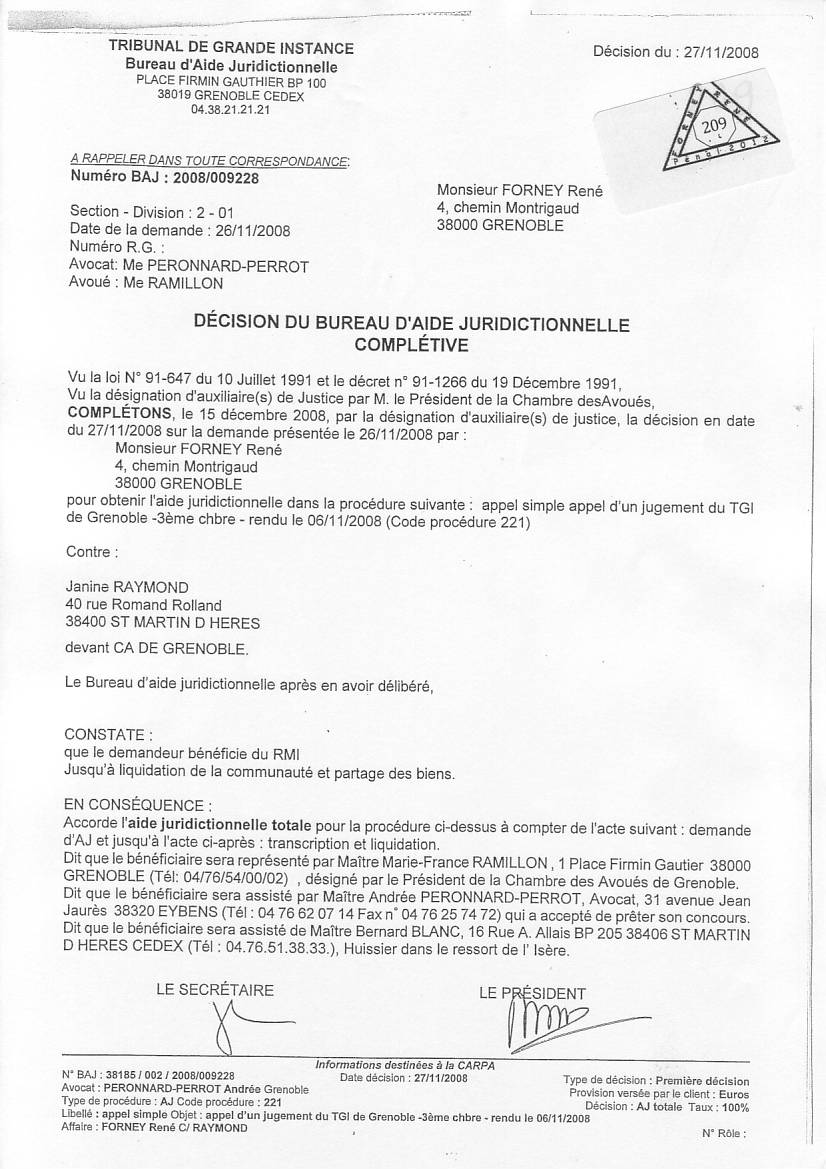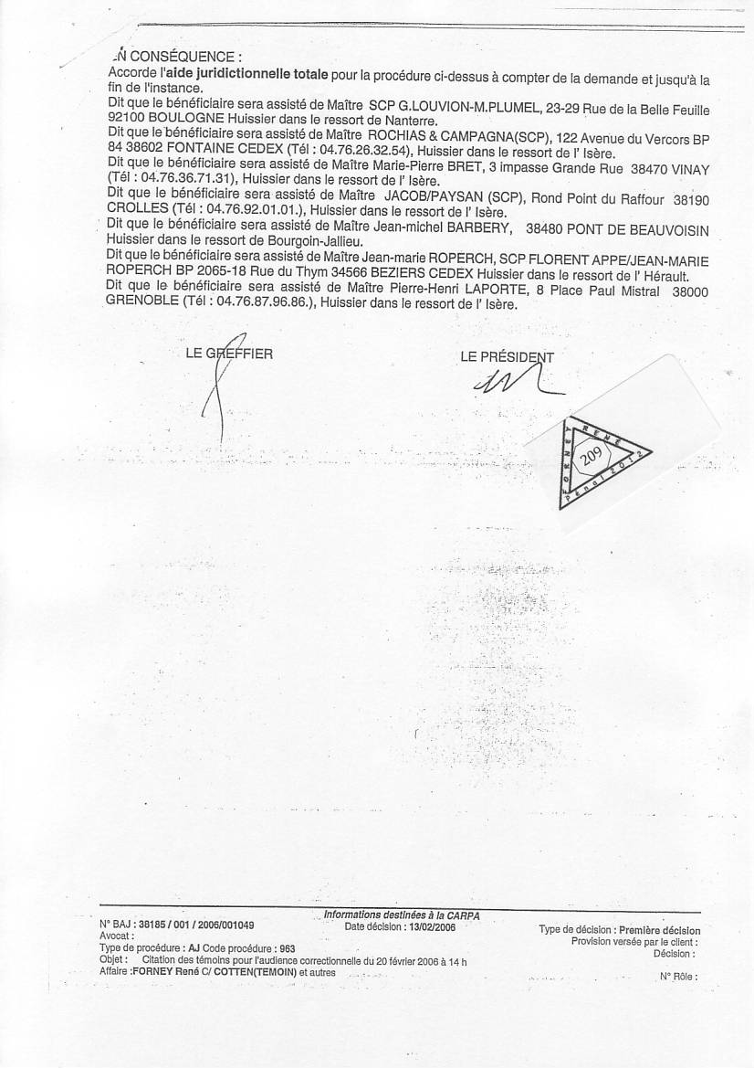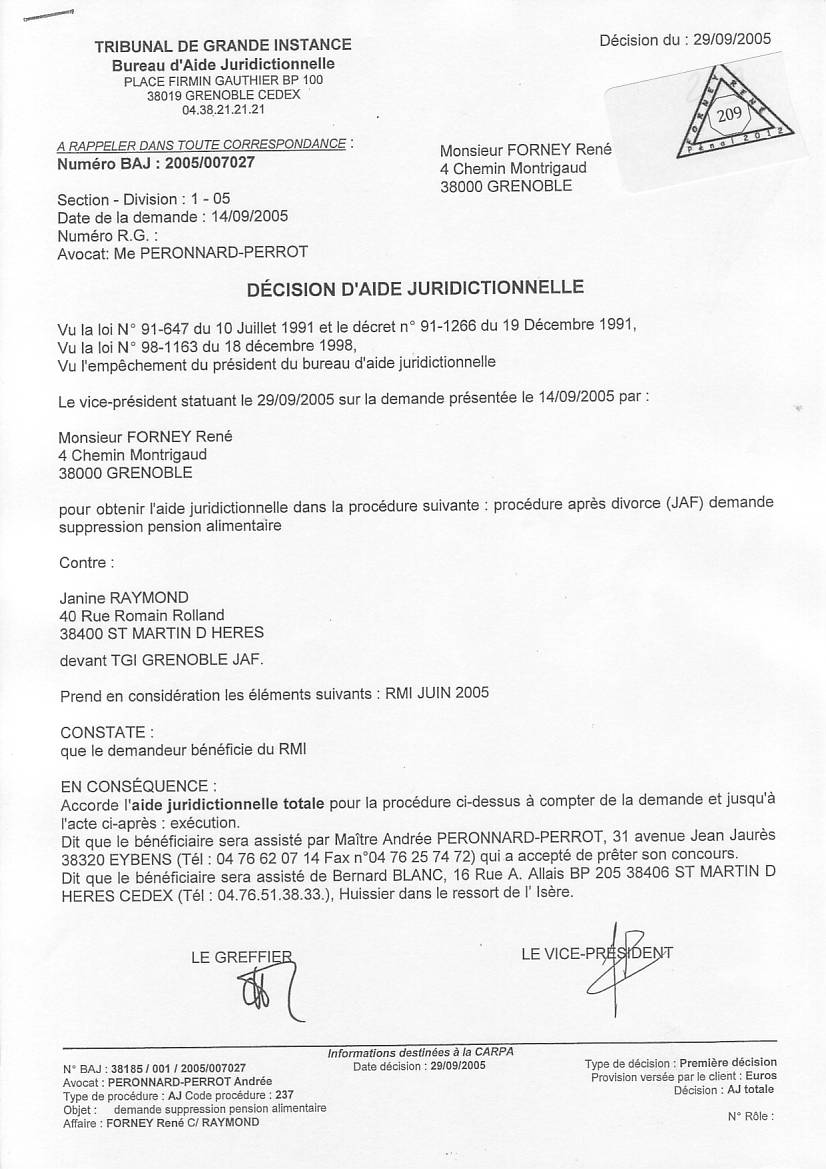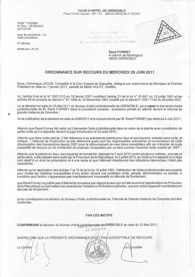 VOIR les décisons d'AJ refusées pour entraver le cours de la justice clic ICI