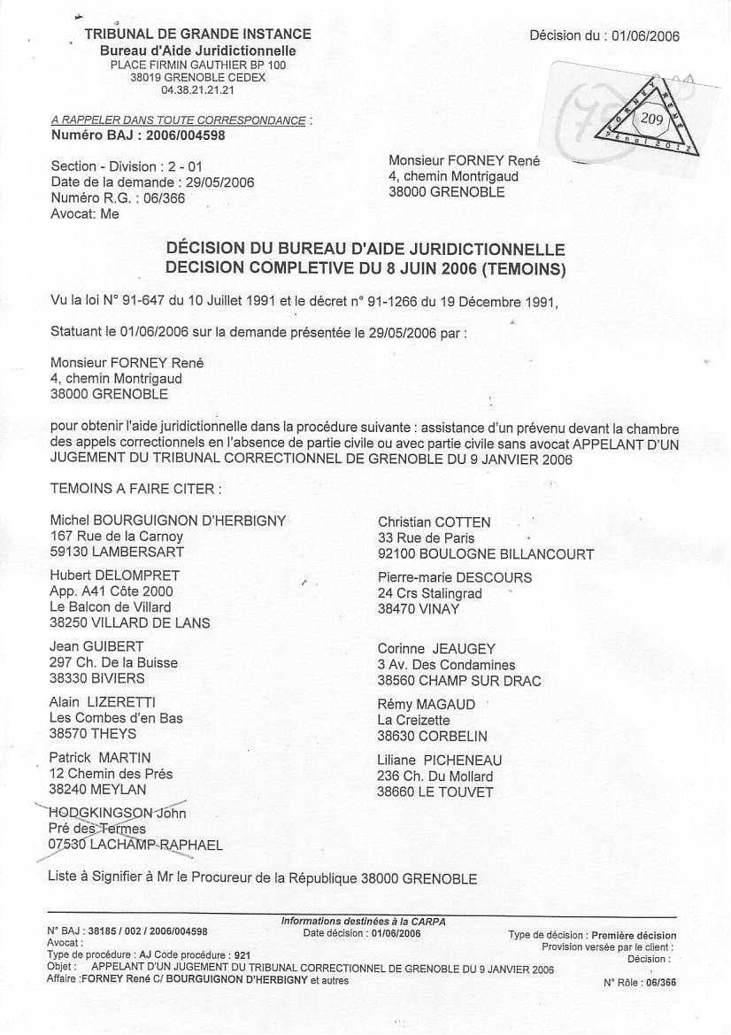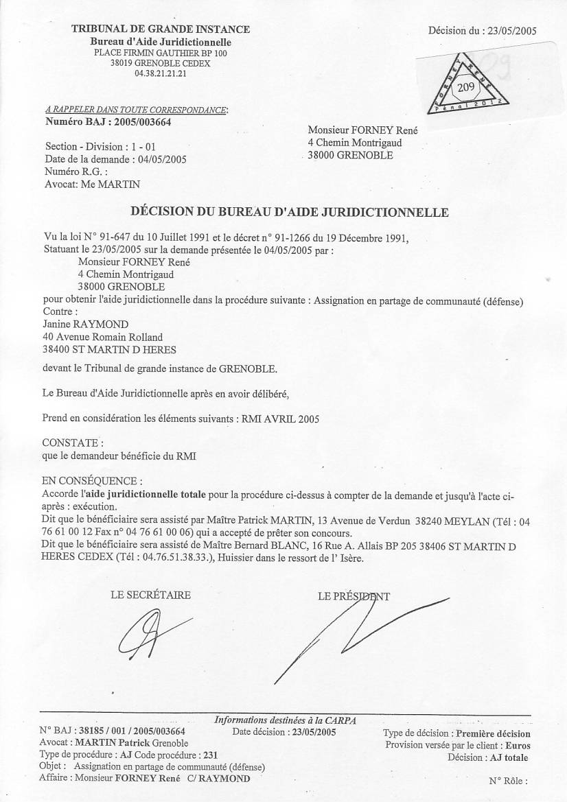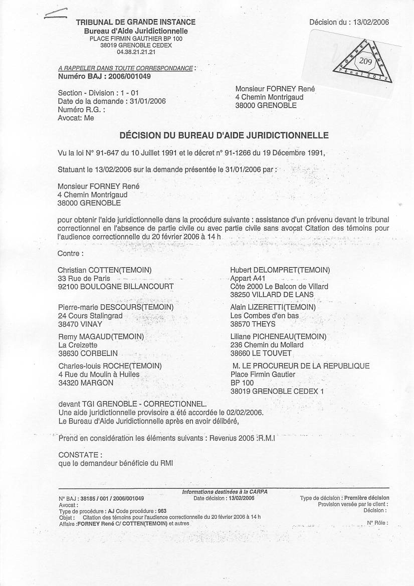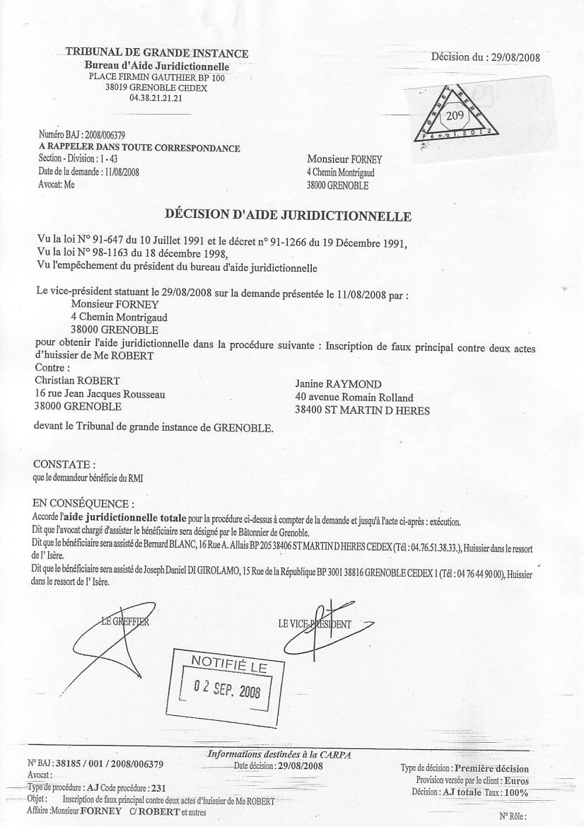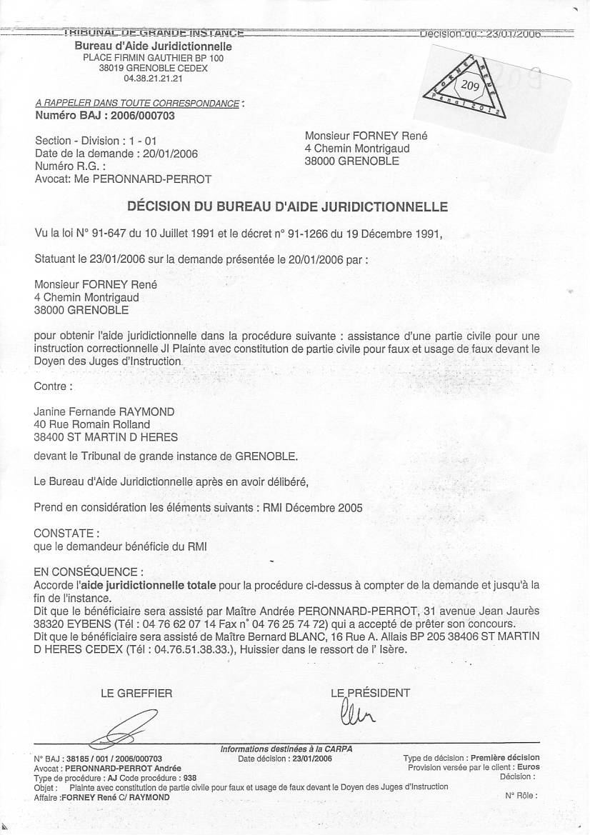 VOIR les décisons d'AJ refusées pour entraver le cours de la justice clic ICI