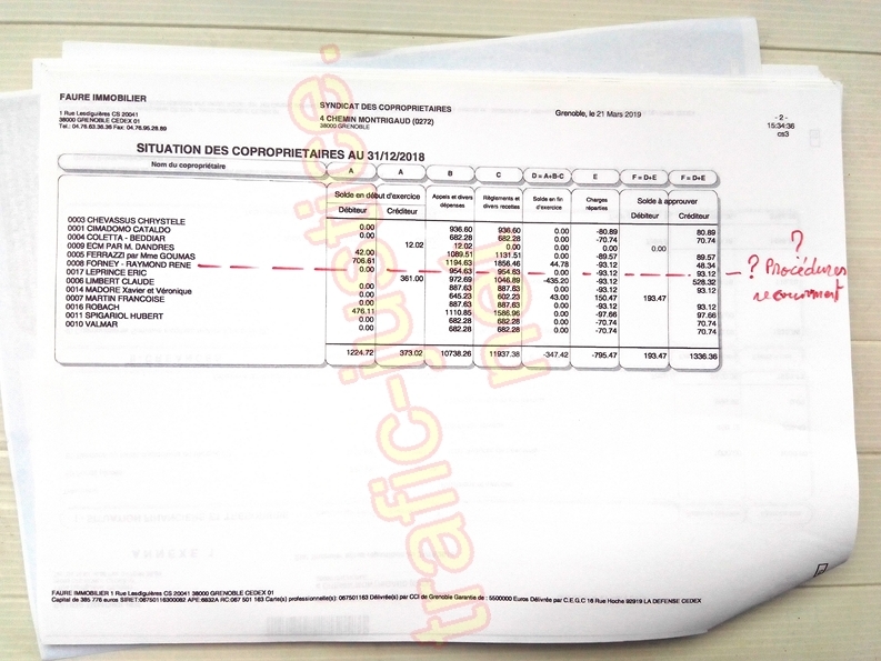 M. FORNEY produira à l'audience des dossiers originaux dans leurs enveloppes d'origine, reçus du syndic sur deux décennies à sa bonne adresse du 4 chemin Montrigaud à Grenoble pour confirmer que Mme RODRIGUEZ a menti à propos de copies produites à l'instruction par M. FORNEY. Ces copies de premières pages (fournies à l'instruction) servaient à justifier que le syndic a soudainement et volontairement envoyé l'appel de fonds de janvier 2019 et les relances à une fausse adresse ainsi que les assignations au tribunal en 2019 alors que le compte de charge était à zéro de dette jusqu'en décembre 2018.