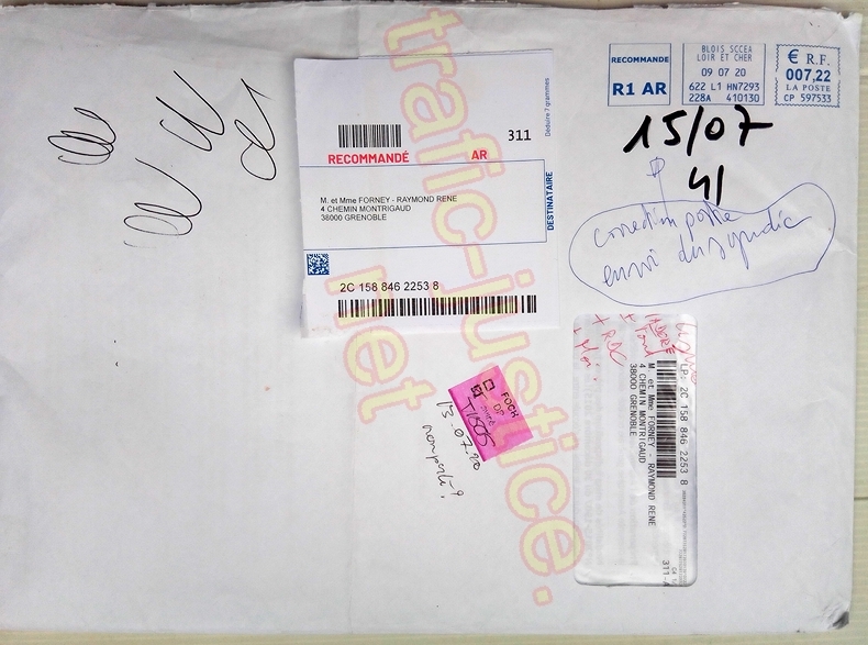III - On peut s'étonner que le tribunal de Grenoble (qui utilise depuis 1999 l'adresse de M FORNEY du 4 chemin Montrigaud à Grenoble) n'ait pas fait remarquer à l'avocat du syndic Pierre-Marie DEJEAN ni à ce commissaire de justice (huissier) leurs erreurs d'adresse grossières alors que des dizaines de recours sont publiés sur internet notamment depuis 2003 lors des vols des fichiers par la police sur des accès confidentiels et des vols des courriers de M FORNEY par ces mêmes policiers en 2000 !