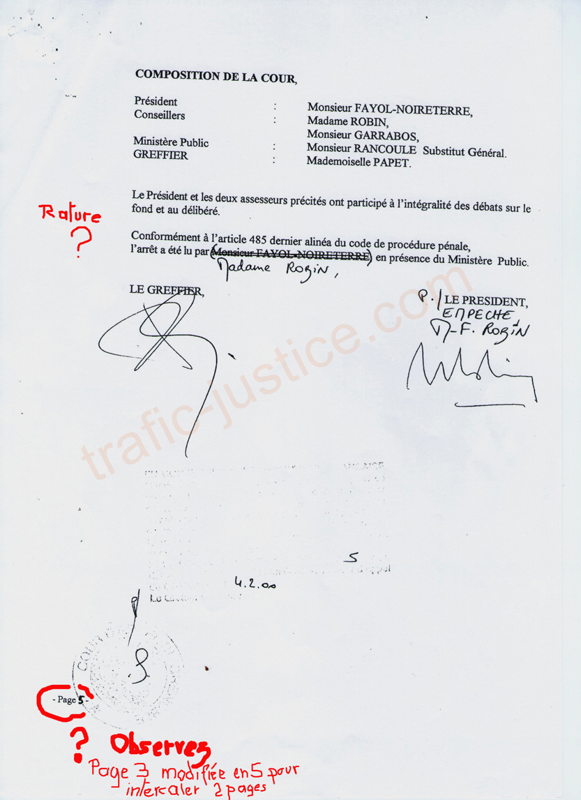 ![]() Page indiquée 3 intercalée avec son numéro manuscrit ![]() observez la suite de la page 2 effacée et complétée ici sur cette page 4 ![]() Observez cette page 3 de signatures des juges raturées et modifiée en page 5 pour intercaler deux pages 3,4 ![]() De quels jugements sort cette page 1, sans information de René FORNEY avec le nom de son avocate Annie BOTTA-AUBERT qu'il a poursuivie au pénal en ignorant cette procédure ? ![]() ![]() ![]() Le 1er octobre 2018 à 14h, quels vont être les juges qui peuvent valider pareil faux et en devenir complice par abstention volontaire ? ![]()