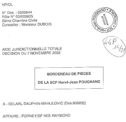 Bordereau de Pièces de la SCP Hervé-Jean POUGNAND : Pièces ( P ) (V,A,B) (F) (D) (J:19/21) J:20/21 liste 21/21