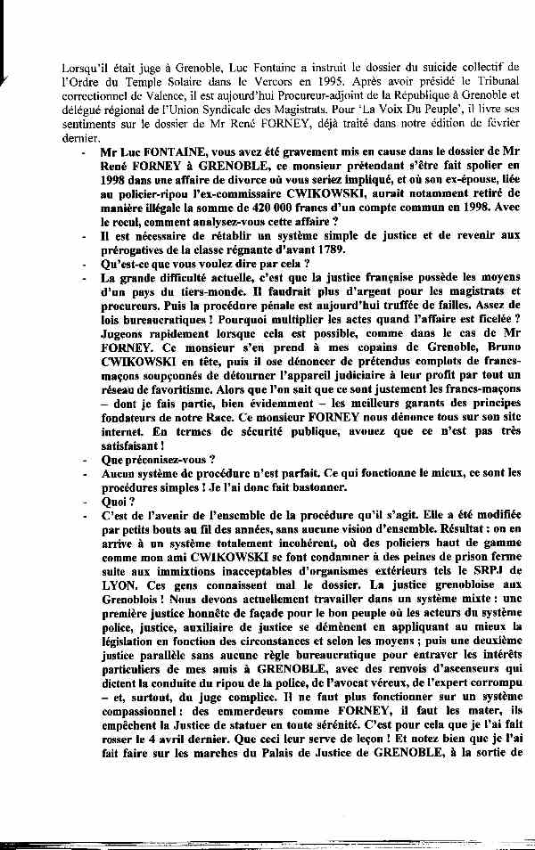 sentiments sur le dossier de Mr René FORNEY, déjà traité dans notre édition de février