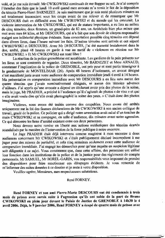 CWIKOWSKI et DESCOURS. Avec Mr DESCOURS, j'ai été menotte brutalement dans le