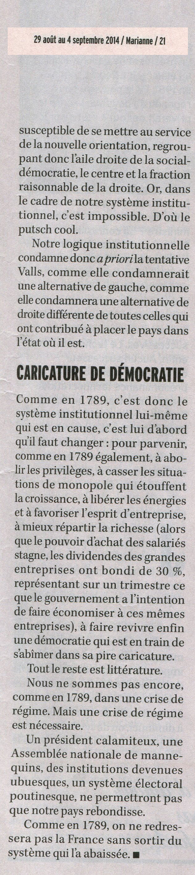 Nous ne sommes pas encore, comme en 1789, dans une crise de régime. Mais une crise de régime est nécessaire.
